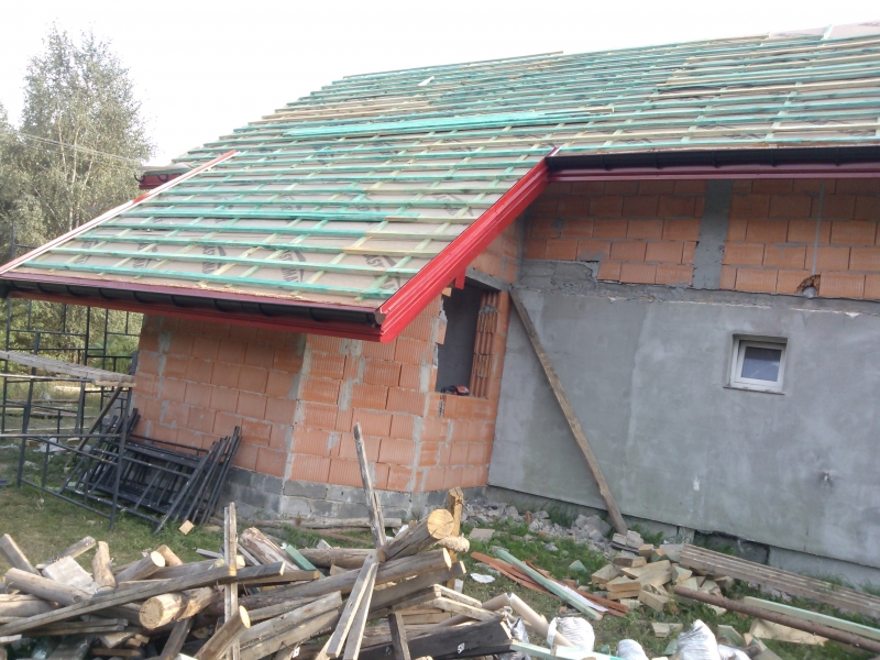 Grabce - Demontaż pokrycia dachowego, więźba dachowa, membrana, łacenie, blacho dachówka, opierzenia, okna dachowe.