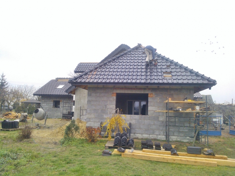 Kopydłowo - demontaż dachu, podmurówka, wieńce, kominy, więźba dachowa, membrana, łacenie, dachówka, okna dachowe, opierzenie, system orynnowania.