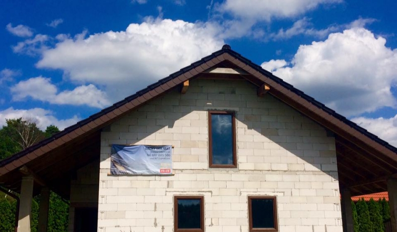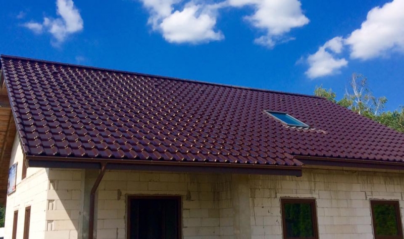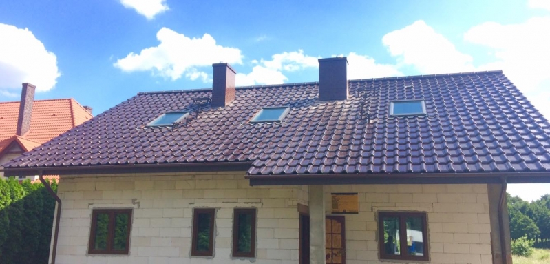 Dach został pokryty dachówką ceramiczną, opierzenia wykonane ze struktonitu. Dla tego pokrycia dachowego inwestor zastosował system rynnowy metalowy.